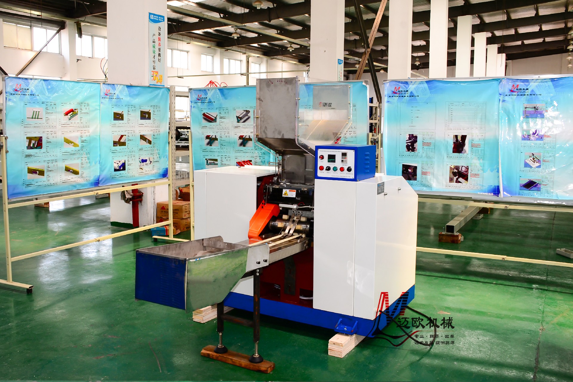 3、出料装置增设不锈钢接料斗,劳动强度低,1人可以操作2台设备;