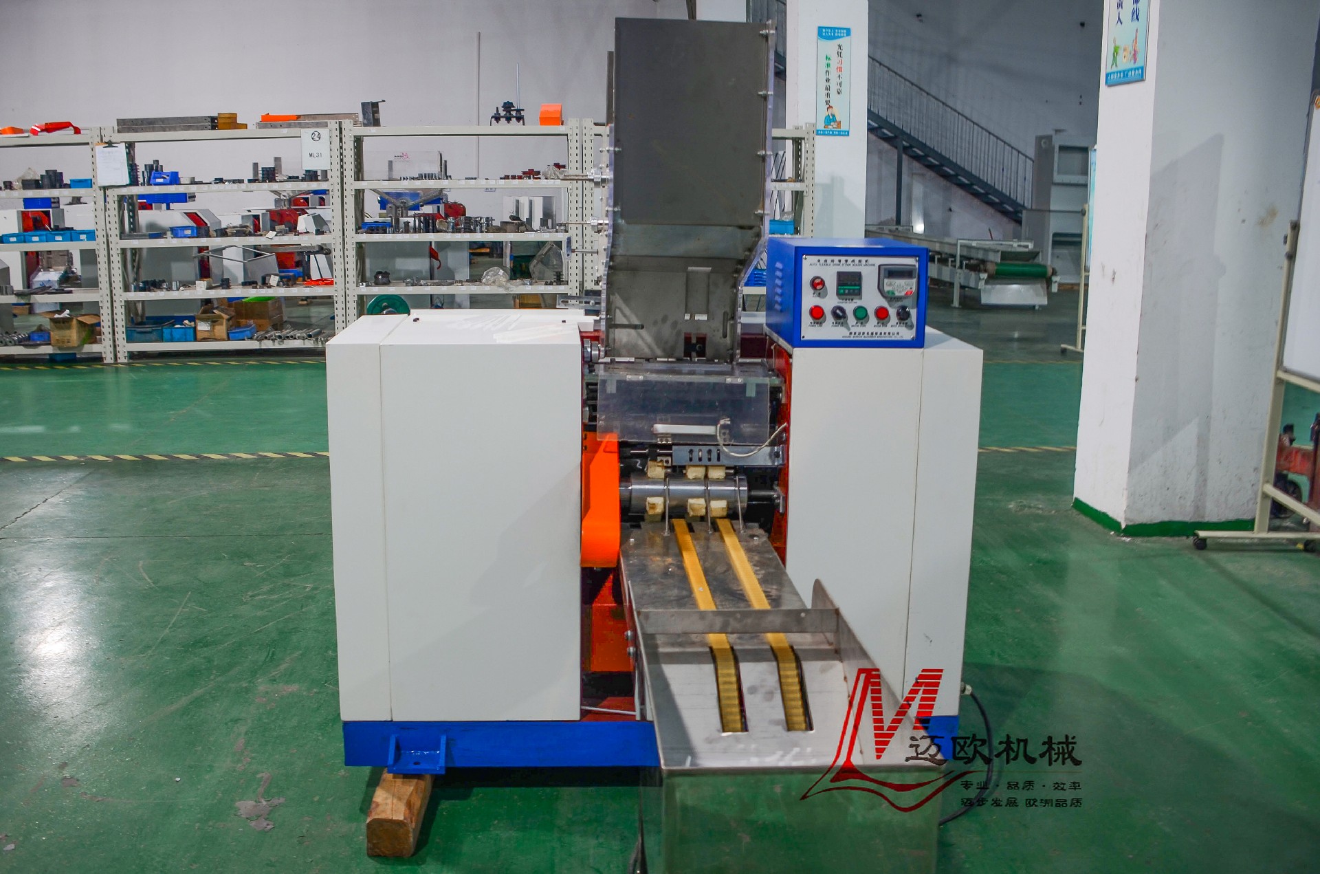 ML21B大口径弯管全自动成型机简介:ML21B系列全自动可弯吸管成形机是将直管坯加工成可弯吸管的一种自动化设备。直管坯加入成形机上部料斗,经12组输送装置、1...